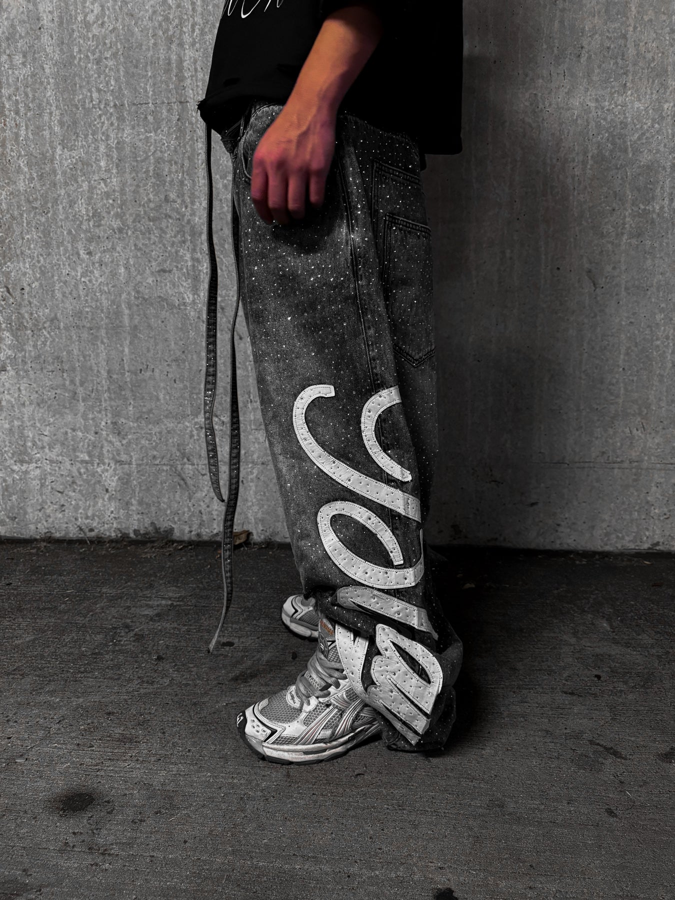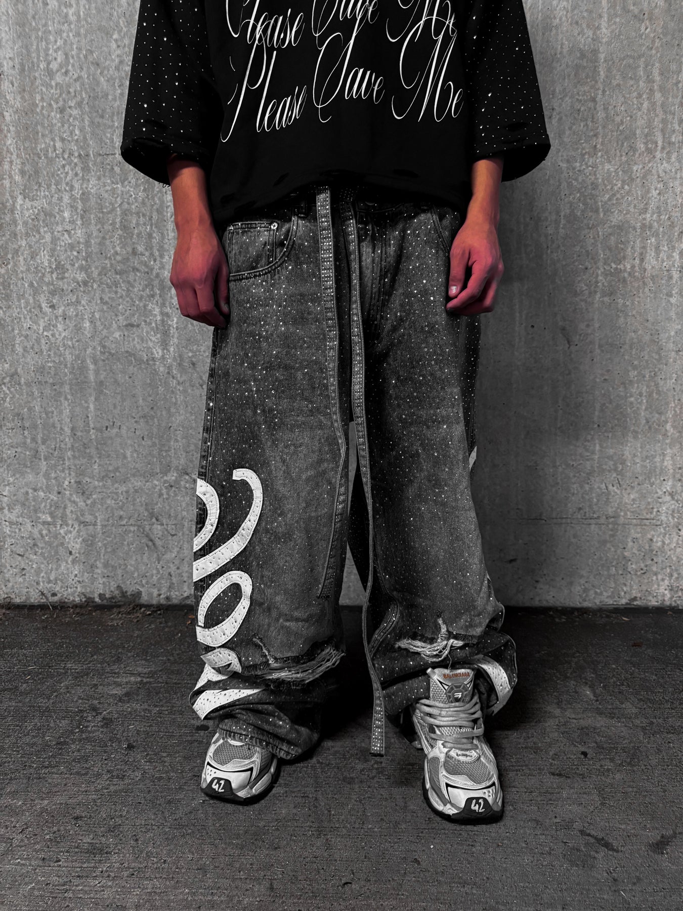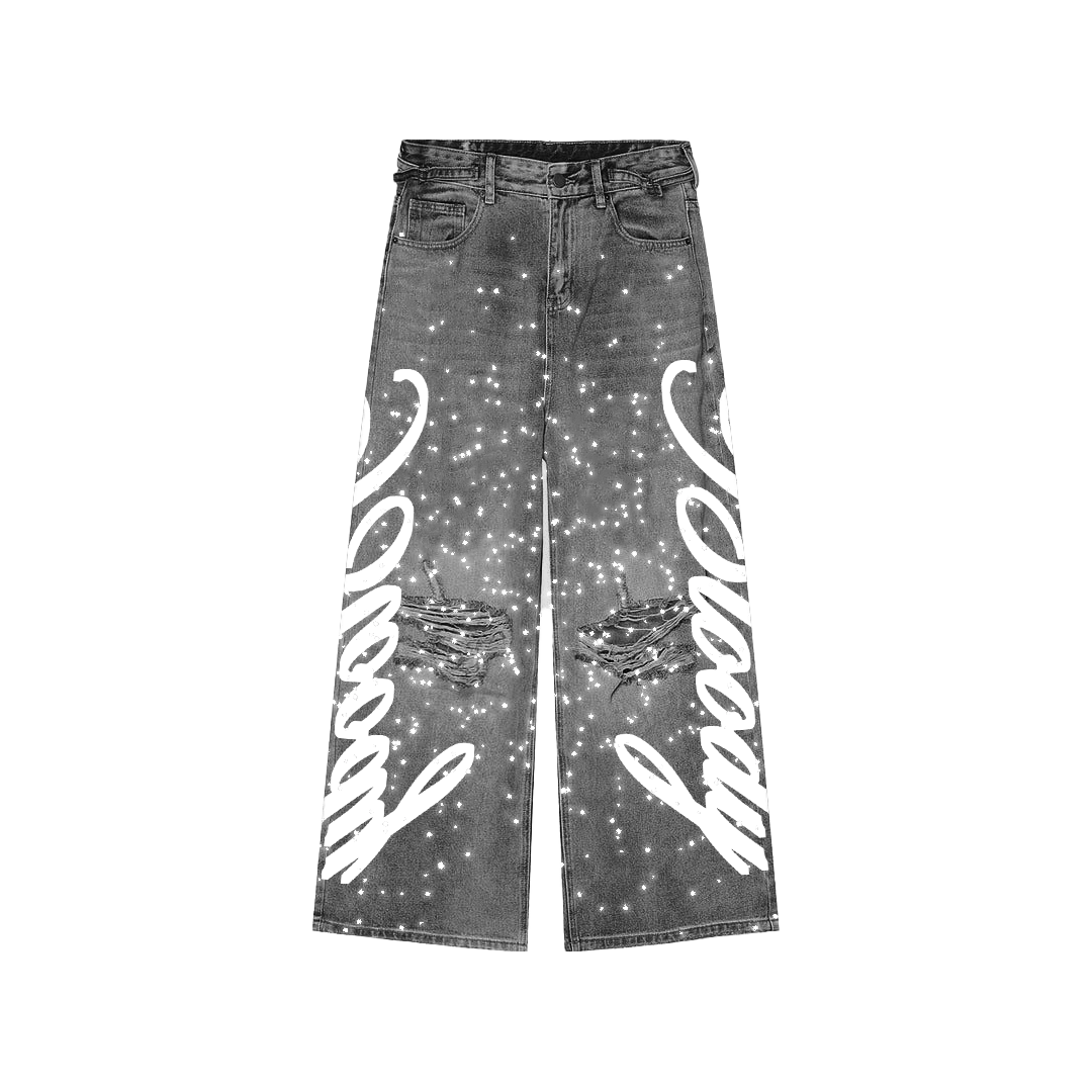 Gray Rhinestone "Bloody" Denim